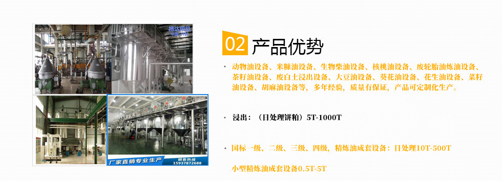 動(dòng)物油設(shè)備、米糠油設(shè)備、生物柴油設(shè)備、核桃油設(shè)備、廢輪胎油煉油設(shè)備、茶籽油設(shè)備、廢白土浸出設(shè)備、大豆油設(shè)備、葵花油設(shè)備、花生油設(shè)備、菜籽油設(shè)備、胡麻油設(shè)備等。